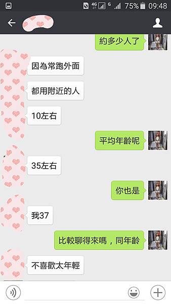 " 嗯嗯,因為覺得自己最近心裡變化很大,一直想找年輕女生,可能是中年危機吧! " 照片裡的他有點半遮掩,髮型僵硬,典型的台灣白領族,年齡介乎40歲上下。